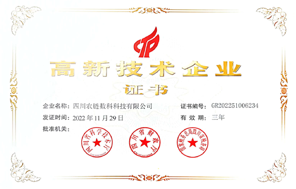 高新院孵化公司——四川农链数科科技有限公司通过国家高新技术企业认定